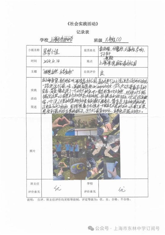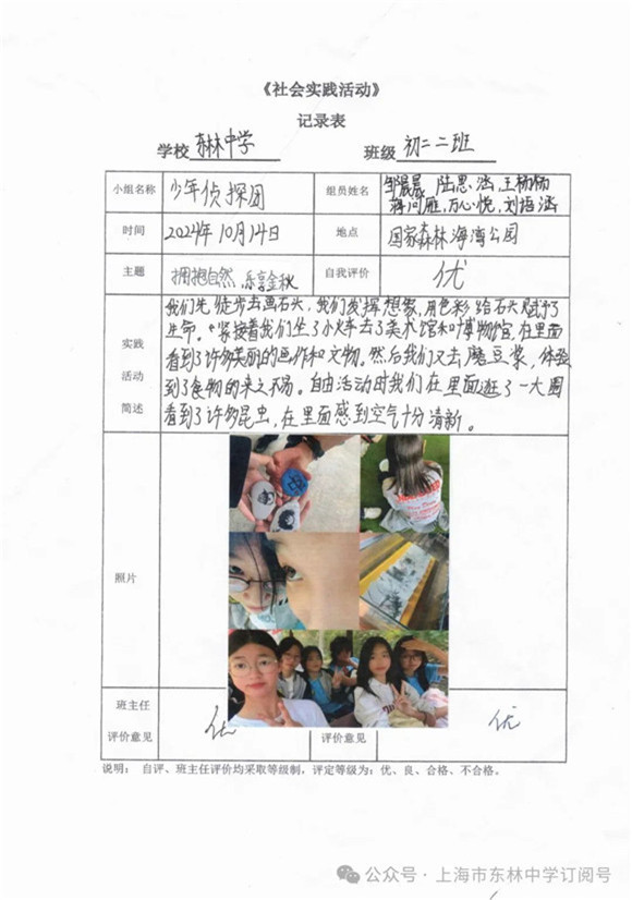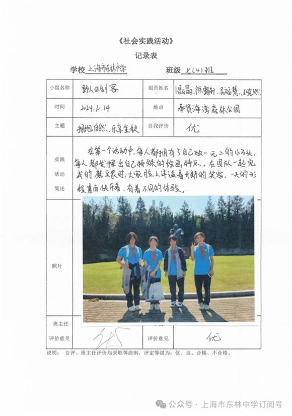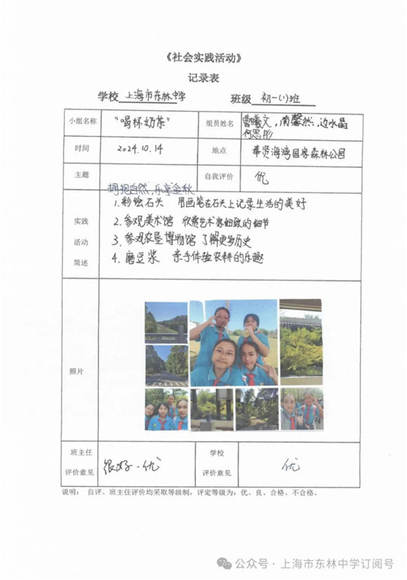 集体课程结束后,同学们开启了愉快的小队自由活动。大家都觅得一方惬意小天地,纷纷拿出各式各样的新鲜水果和美味零食,毫不吝啬地互相分享,空气中弥漫着幸福的味道。温和的秋阳透过公园内树木的层层枝丫,撒下斑驳的光影,一束束微光照射在那一位位青春少年的脸颊之上,展现着一种独属于秋季的生机与活力。以下是参与本次社会实践考察活动的"优秀活动小队":