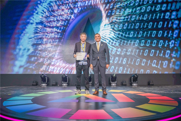 中国工程院院士、之江实验室主任王坚在峰会现场领奖