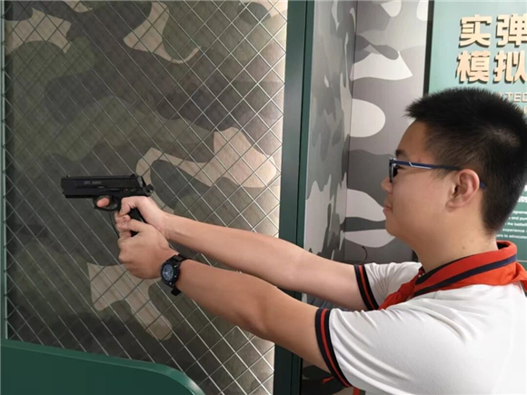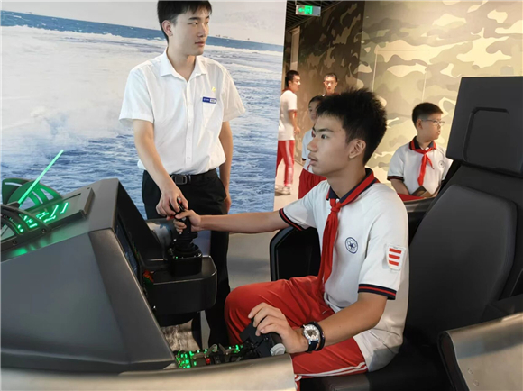 活动特别设置"戎耀训练营"实践环节。在"挑战枪王"模拟射击区,团员们体验到"百发百中"的成就感,更深刻感受到"精准射击"背后所需的专注与责任;在"逐梦海空"飞行模拟舱,队员们化身"飞行员",操纵战机完成起降、巡航等任务,直呼"震撼"的同时,更体会到"强国强军"的使命担当。
