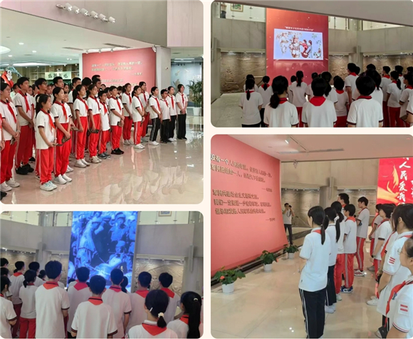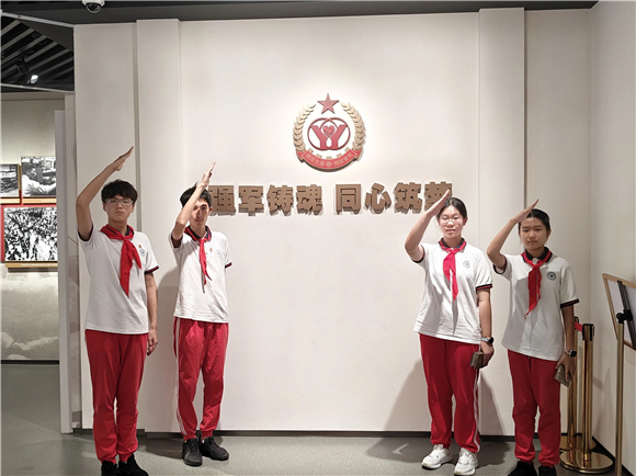 在9月3日阅兵日即将到来之际,为深化青少年爱国主义教育、国防教育、弘扬双拥优良传统,上海市建平实验中学团委精心策划"青春逢盛世·双拥筑国防"主题团队日活动。枣庄、金川校区50余名团员、队员走进上海双拥工作展览馆,通过"历史场景重现+互动实践体验+校馆协同育人"三位一体模式,让爱国主义精神与双拥情怀在青春血脉中赓续传承。