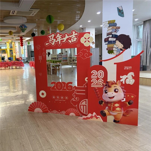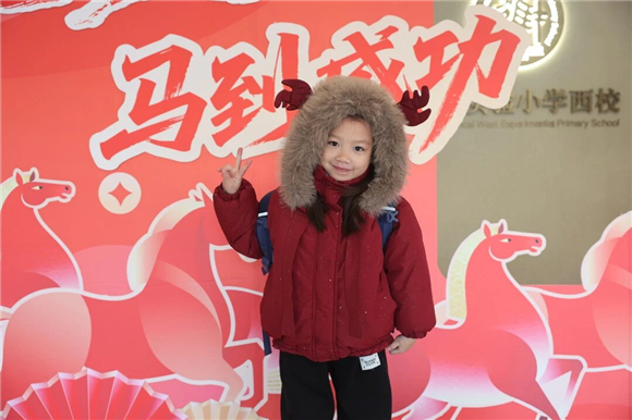 新年的脚步悄然临近,进才实验小学西校早已被浓厚的年味包裹。红灯笼挂满走廊,班级板报布置一新,精致的马年主题装饰点缀校园各处,每一处细节都透露着师生们对新年的期盼。