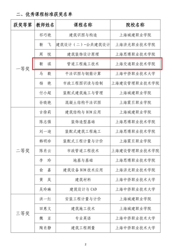 近日,上海市高职高专土建类专业教学指导委员会陆续公布了2025年上海市高等职业院校教师说课(教学能力)大赛(土建类专业)及多项教学成果评选结果。学校公用事业和路桥工程学院(以下简称"公用路桥学院")教师凭借扎实的专业素养和突出的教学创新能力,获得特等奖1项、一等奖2项、二等奖2项,充分展现了学校在师资队伍建设、课程改革创新与教学质量提升方面取得的显著成效。